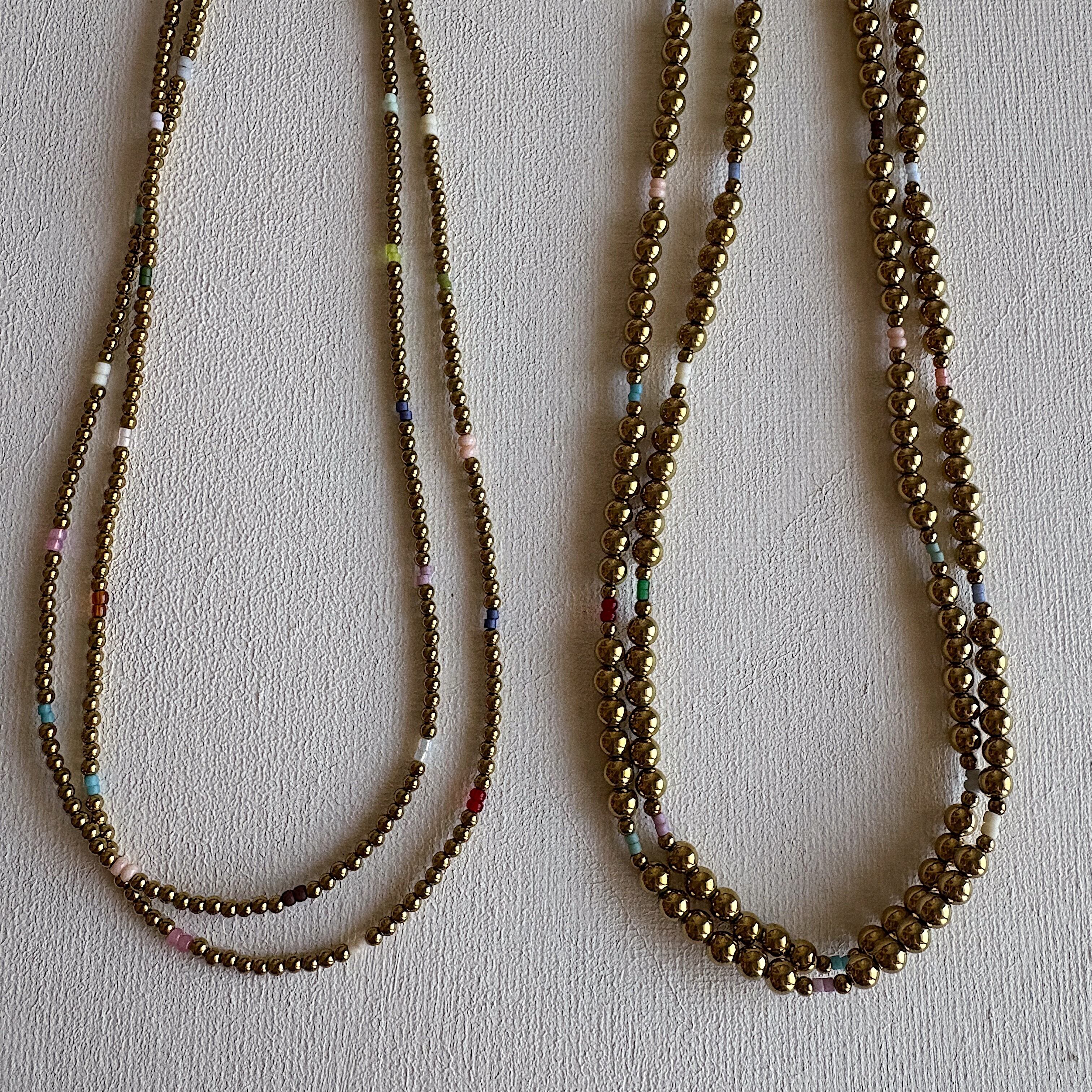 小さなカラービーズを散りばめたネックレス。